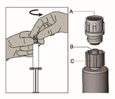 Avertissement - Ne pas autoclaver l'aiguille sécurisée (BD SafetyGlide Shielding Needle) avant utilisation. Les mains doivent rester derrière l'aiguille à tout moment pendant l'utilisation et l'élimination.