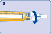 ·Insérez l'aiguille dans votre peau. Pour injecter la dose, appuyez à fond sur le bouton-poussoir. Prenez garde à n'appuyer sur le bouton-poussoir qu'au moment de l'injection [G]. · Gardez le bouton-poussoir totalement enfoncé et laissez l'aiguille sous la peau pendant au moins 6 secondes. Ceci permettra de garantir que la totalité de la dose a été délivrée. |