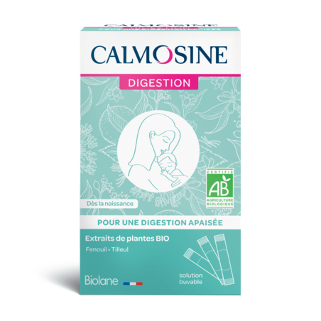 Calmosine Digestion Bio – 12 ampoules de 5 ml est un complément naturel conçu pour favoriser le confort digestif des nourrissons et jeunes enfants. Sa formule bio à base d’ingrédients doux et naturels aide à soulager les coliques, ballonnements et autres inconforts digestifs, tout en respectant la sensibilité de bébé.