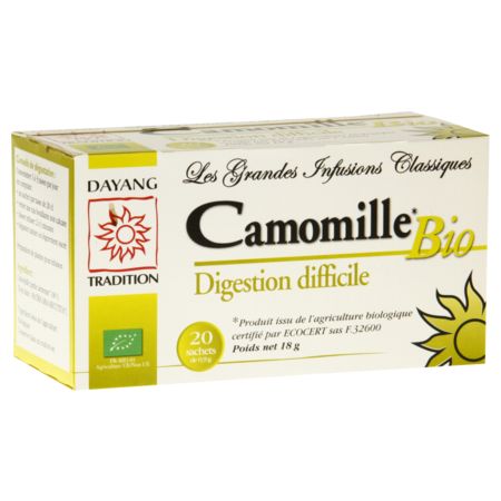 Dayang infusion bio camomille sachet, 20 x 1,5 g | 3,95 € | Voir le site de la pharmacie |