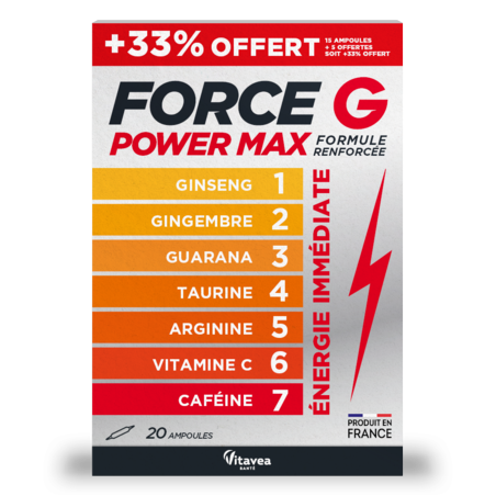 Vitavea Force G Power Max Offre Promo, 20 Ampoules | 16,90 € | Voir le site de la pharmacie |
