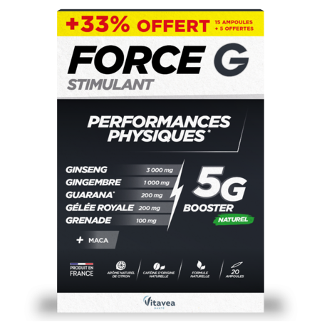Vitavea Force G Stimulant Naturel, 20 ampoules | 14,90 € | Voir le site de la pharmacie |