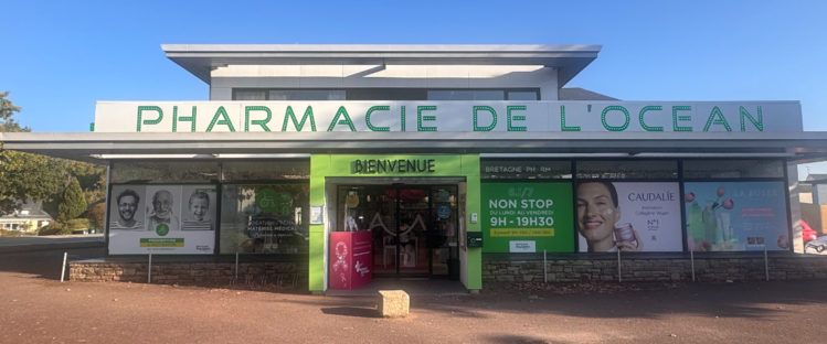 Au plaisir de vous accueilir à la pharmacie de l'océan à Guidel de 9h à 19h30.
